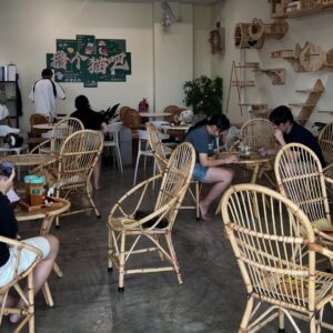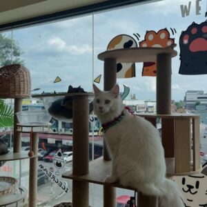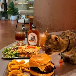 Such special items as Nasi Lemak Waffle, In-House Tau Fu Fah, and Thai Milk Tea Bingsu are available in the menu. It also offers savory and sweet dishes, and one may have a full meal and play with the cats.