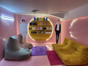 One of the most exciting aspects of Notes By YGM is its aesthetic interior design. The cafe is adorned with bright pastel colours and neon lights, providing an Instagram-worthy backdrop for photos and videos. Fans can capture their experiences while unboxing albums in comfortable seating areas filled with bean bags and couches.